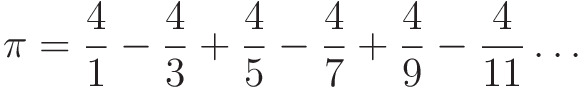 위의 식은 파이 계산을 위한 무한급수 라이프 니츠 공식(Leibniz Formula)이다. 이를 무한히 더하면 파이값을 가질 수 있게 된다.